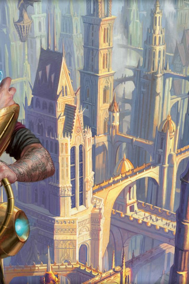 Wallpaper The hero of the game Magic the Gathering on the background of the city