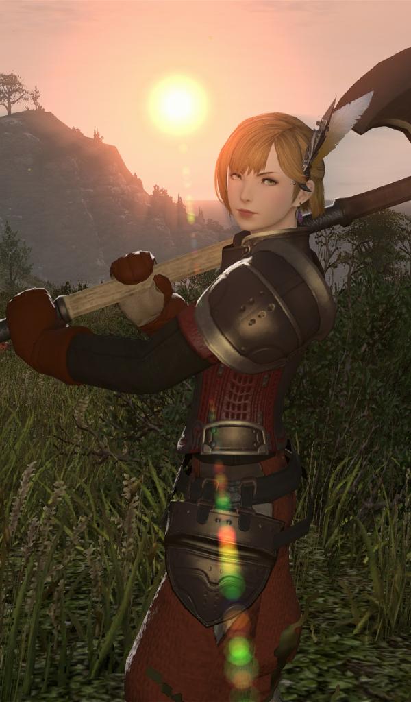 Wallpaper Ax on his shoulder girl from the game Final Fantasy XIV