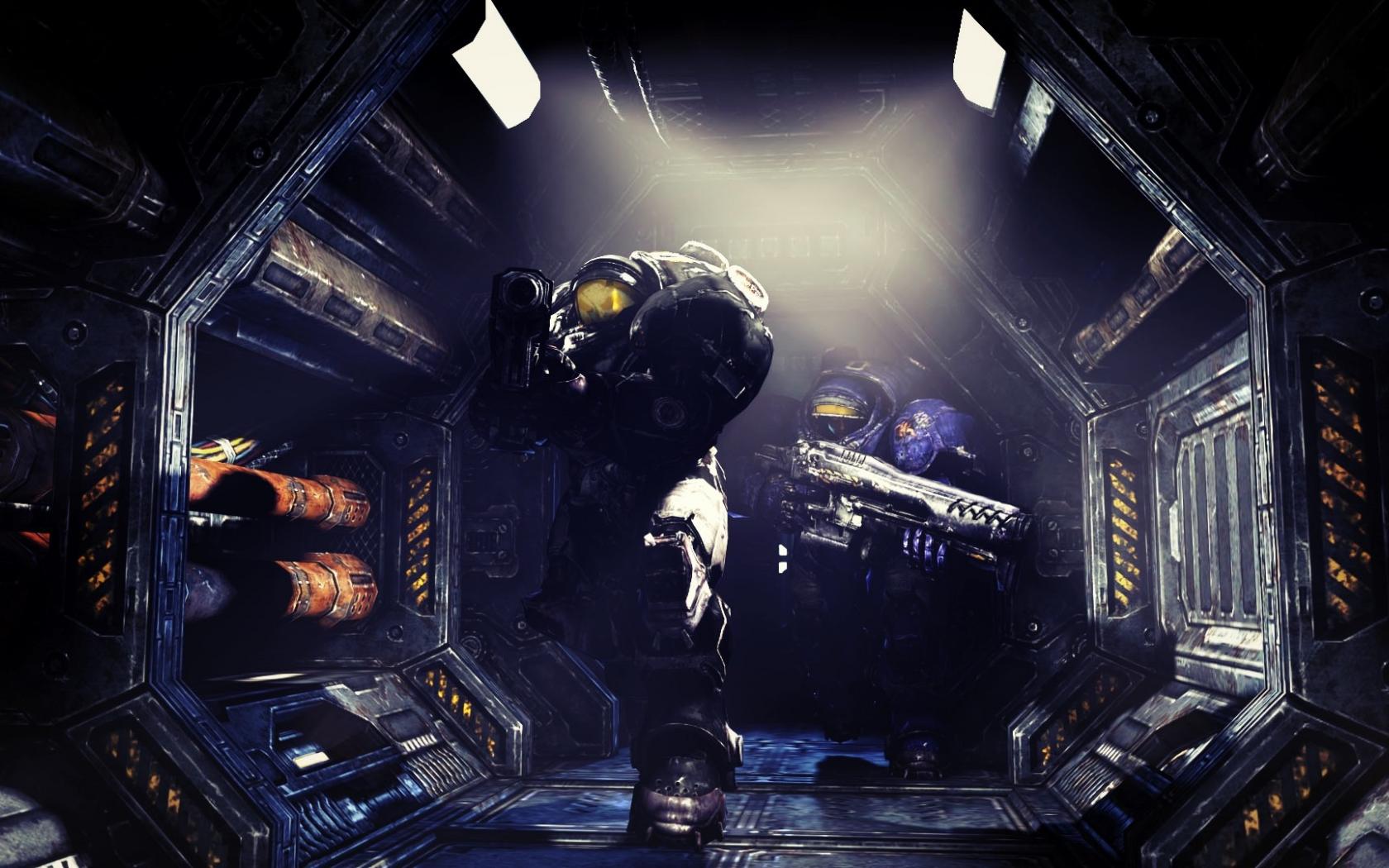 Wallpaper Landing at the station in the game Starcraft II