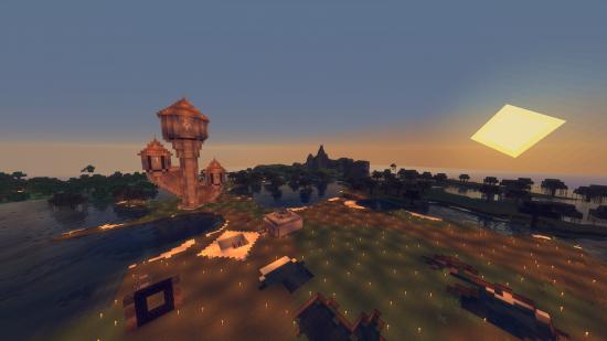 Wallpaper The sun above the plain in the game Minecraft