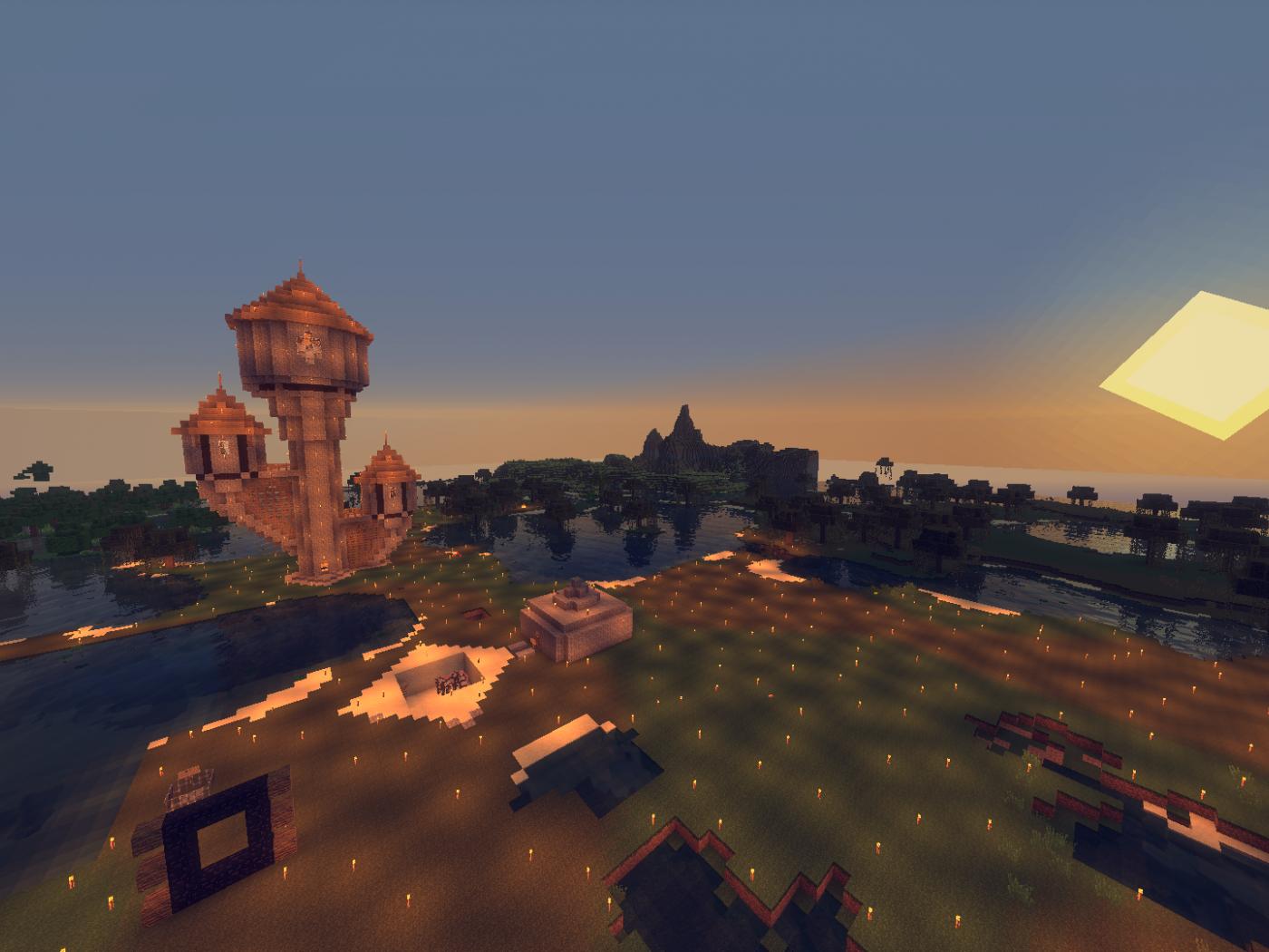 Wallpaper The sun above the plain in the game Minecraft
