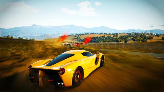 Wallpaper Yellow Ferrari in the game Forza Horizon