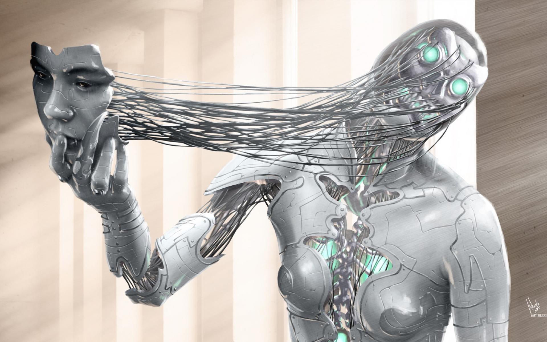 Wallpaper Mask robot in the game Cyberpunk 2077