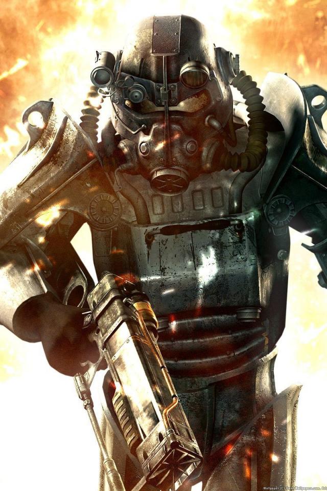 Wallpaper Hero on the background of the explosion in the game Fallout New Vegas