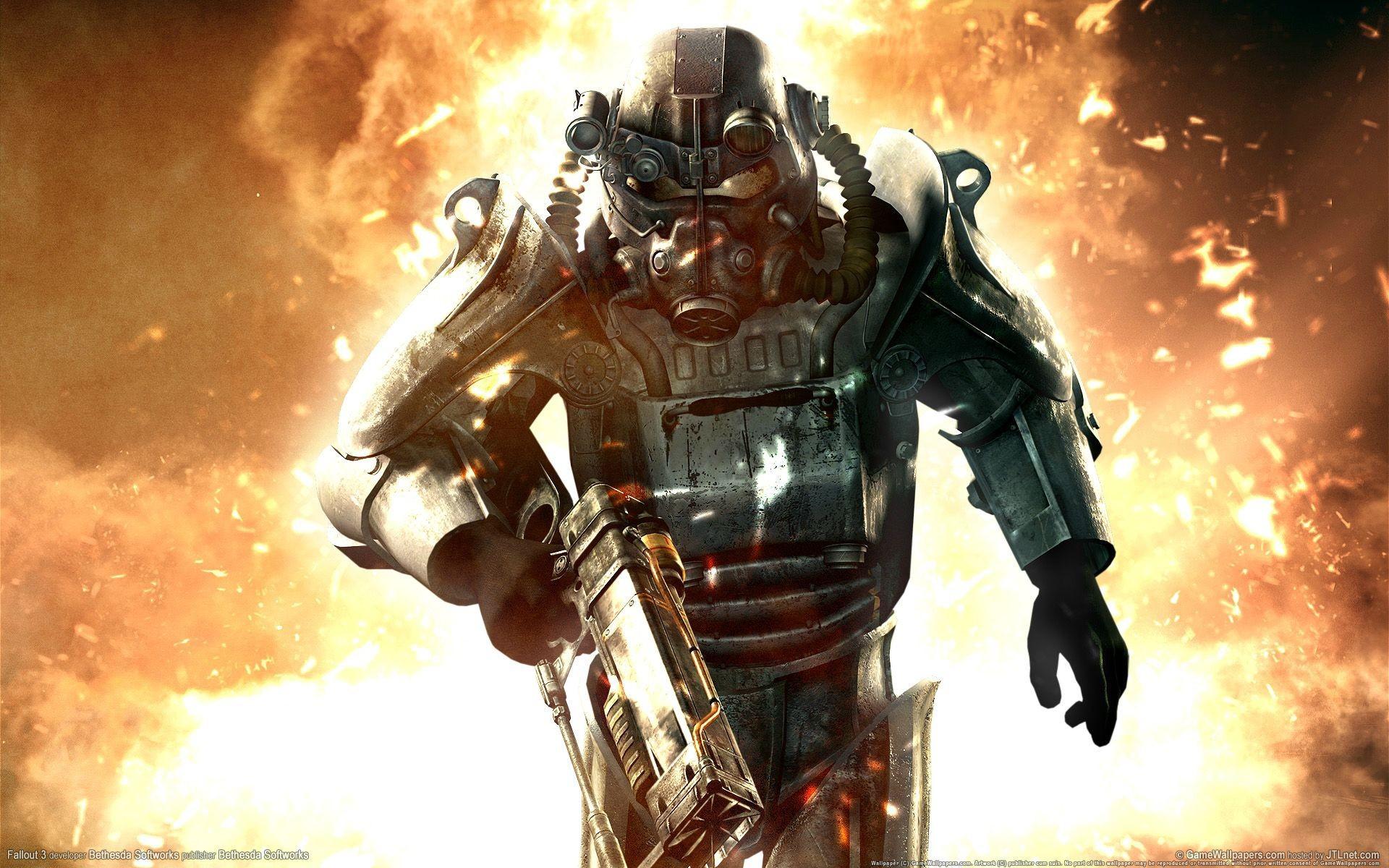 Wallpaper Hero on the background of the explosion in the game Fallout New Vegas