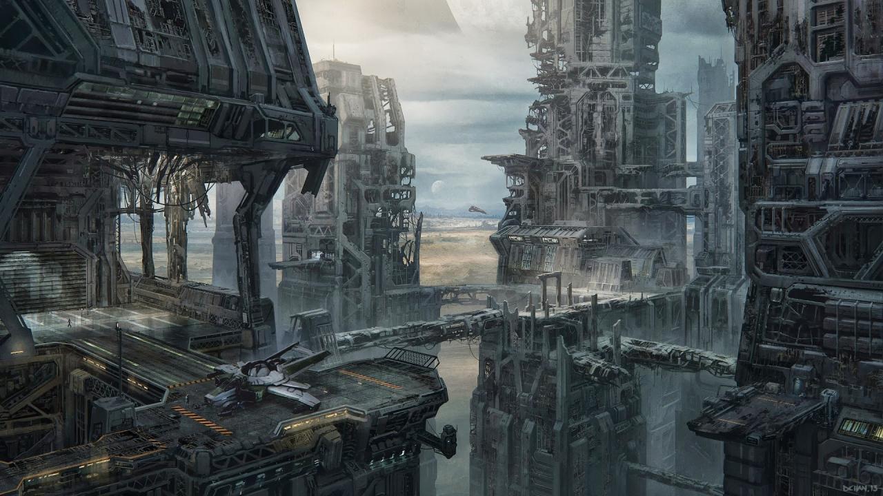 Wallpaper Construction of the spaceport in the game Star Citizen