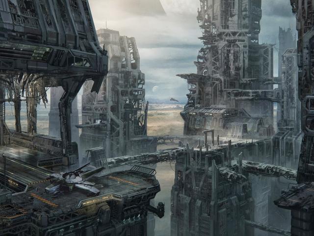 Wallpaper Construction of the spaceport in the game Star Citizen