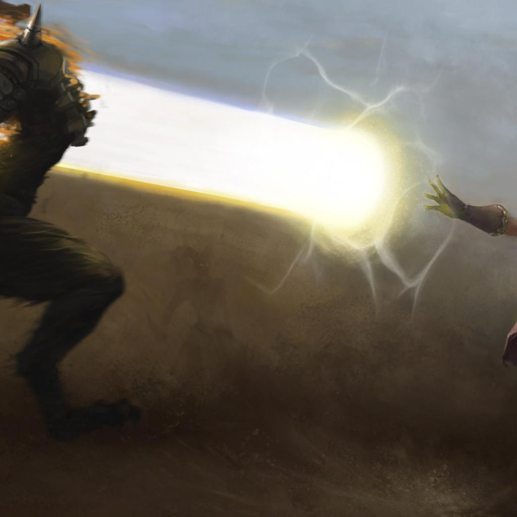Wallpaper Witch with a monster in the game Dragon Age Origins