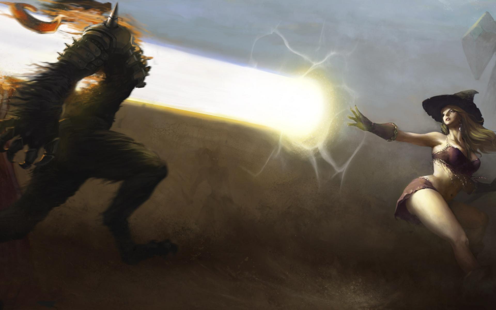 Wallpaper Witch with a monster in the game Dragon Age Origins