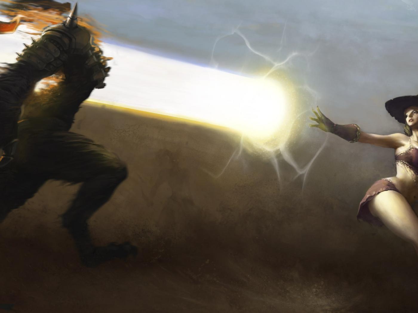 Wallpaper Witch with a monster in the game Dragon Age Origins
