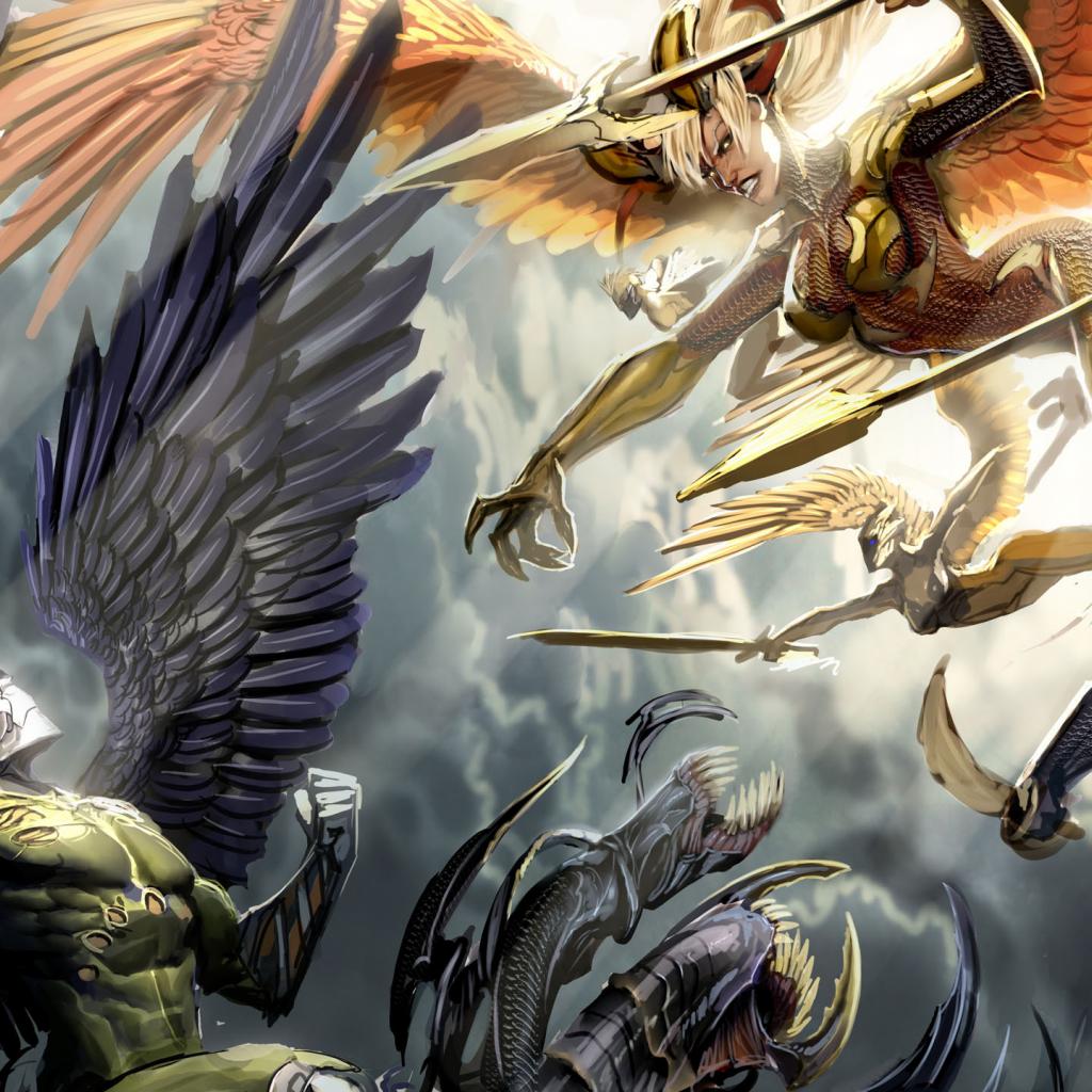 Wallpaper The battle of the white and black angels
