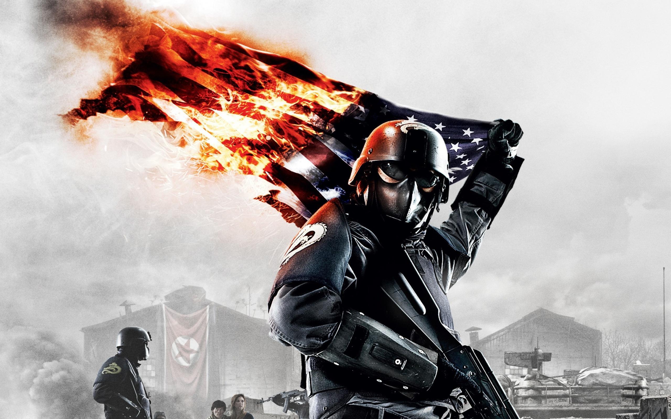 Wallpaper A warrior with a burning flag