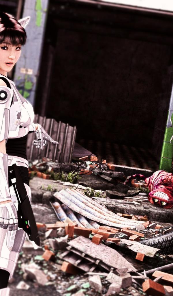 Wallpaper Girl cyborg killed the monster