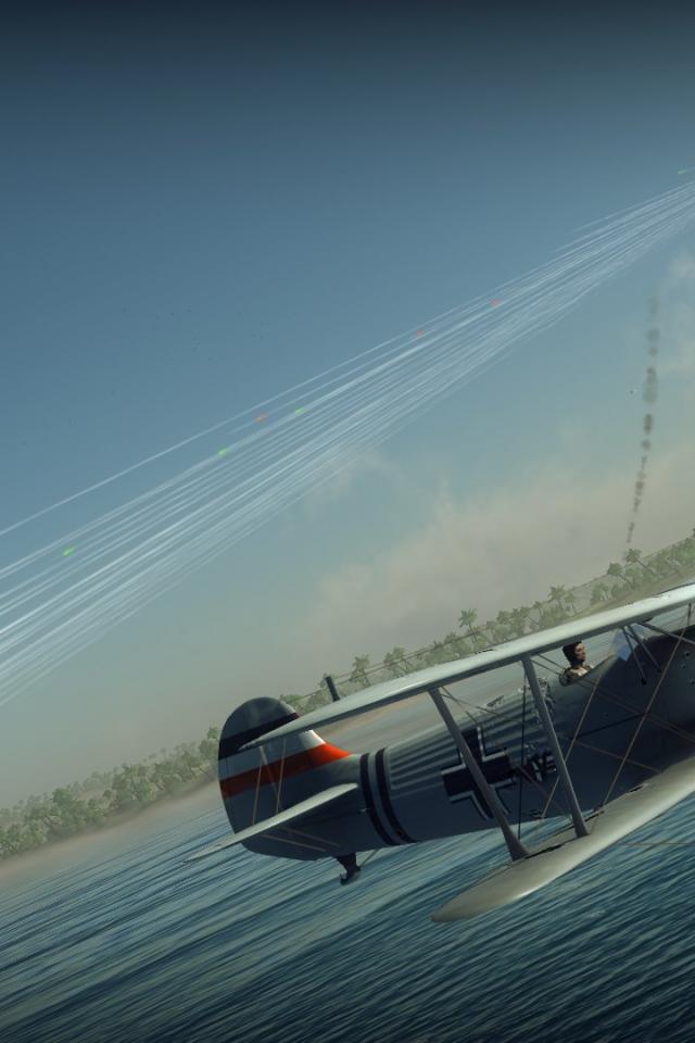 Wallpaper War Thunder plane flying over sea
