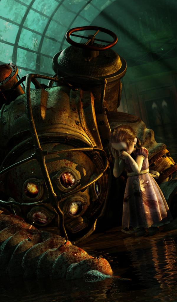 Wallpaper Water, Bioshock, Big Daddy, little sisters, crying, Cyberpunk