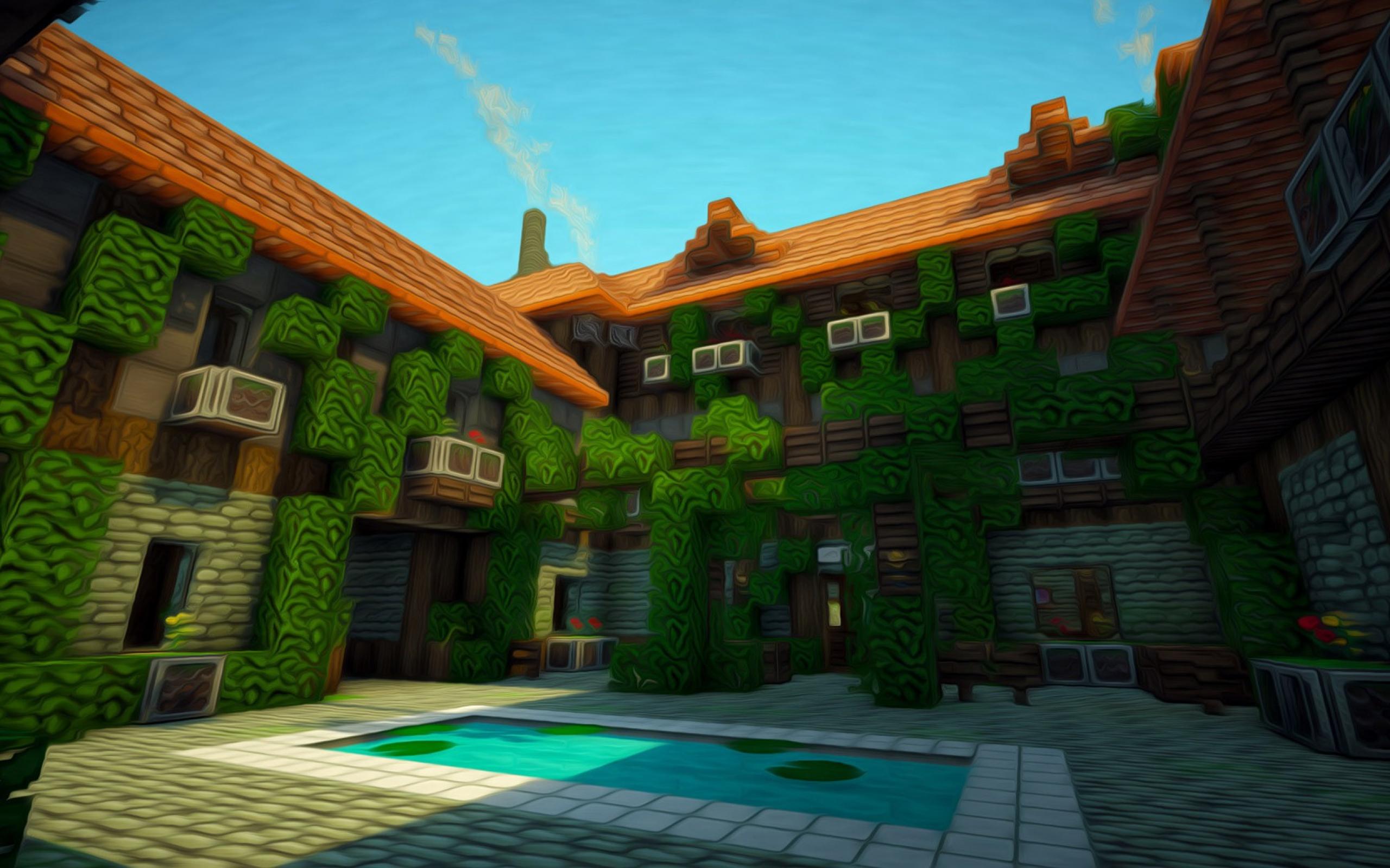 Wallpaper Mansion, Swimming Pool, Minecraft, air-conditioner