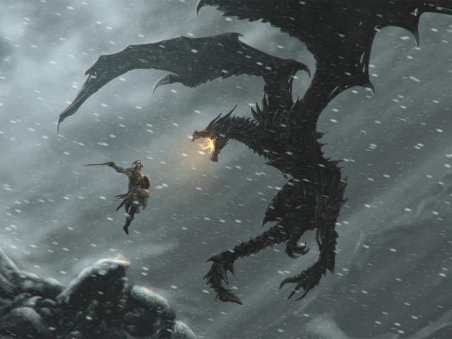 Wallpaper Snow, Snow-capped mountains, Fire, Dragons