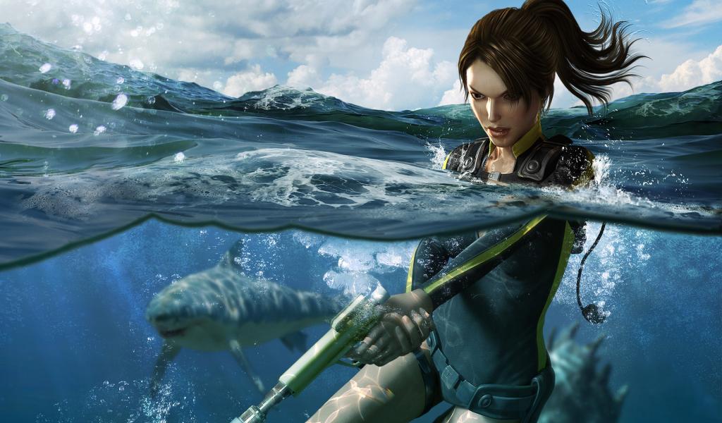 Wallpaper Lara Croft Underwater Hunting