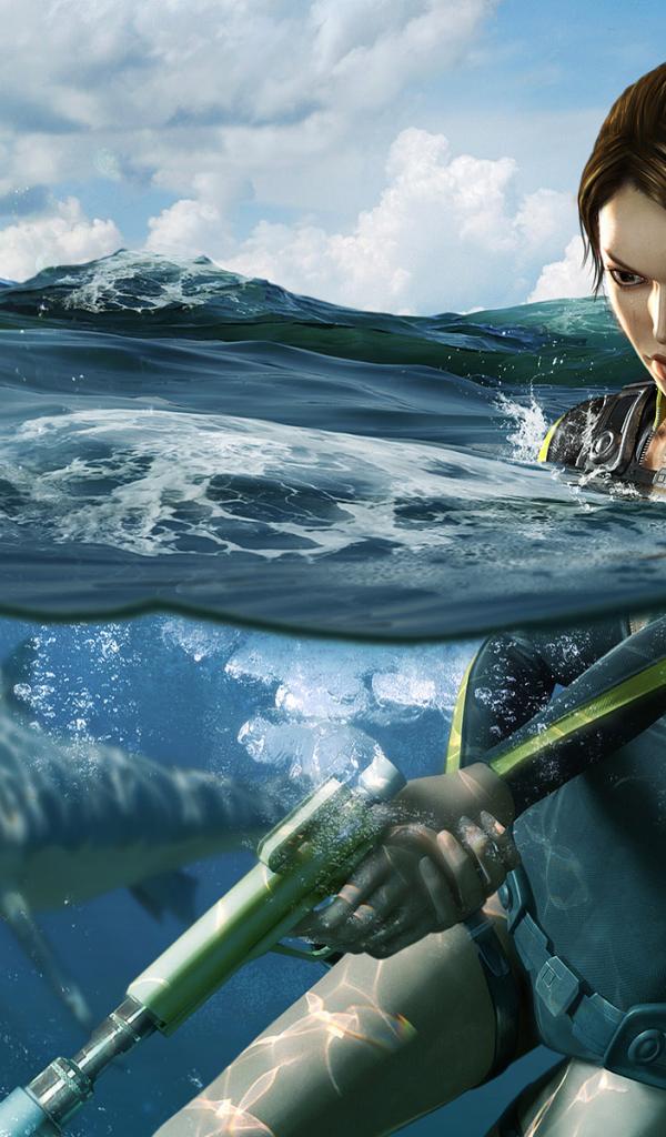 Wallpaper Lara Croft Underwater Hunting