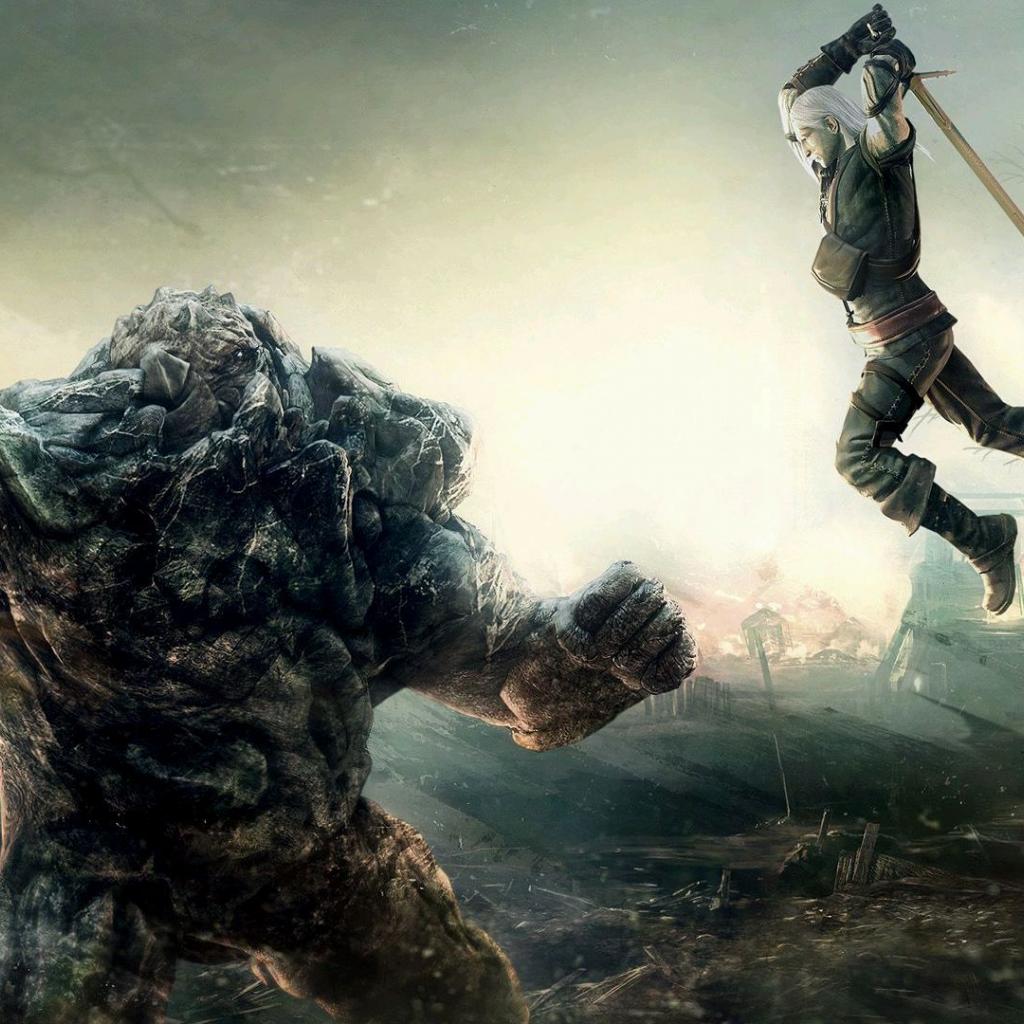 Wallpaper The battle with the monster from the game The Witcher