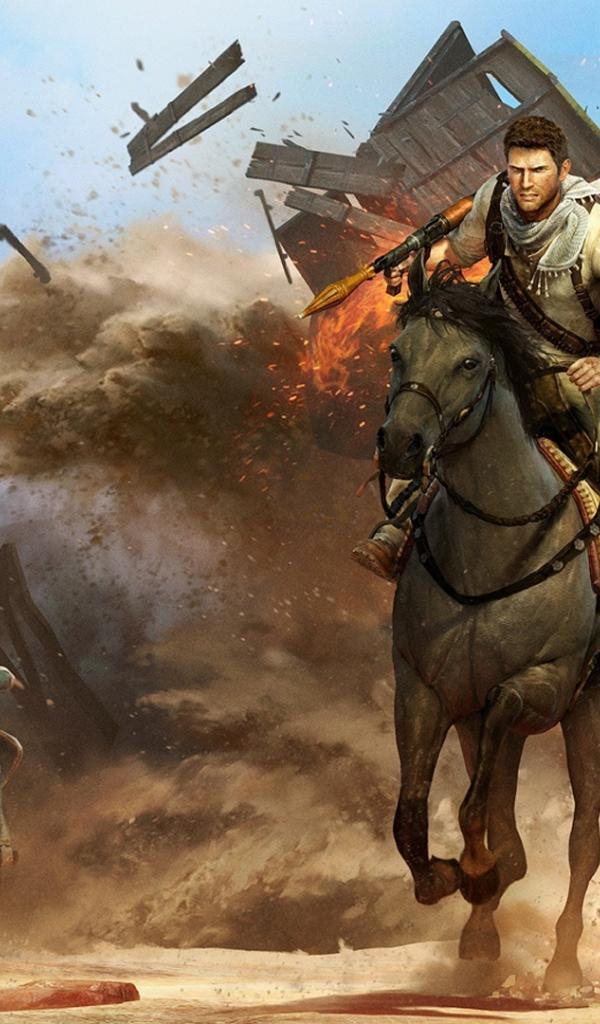 Wallpaper Uncharted 3 : drake is on the horse