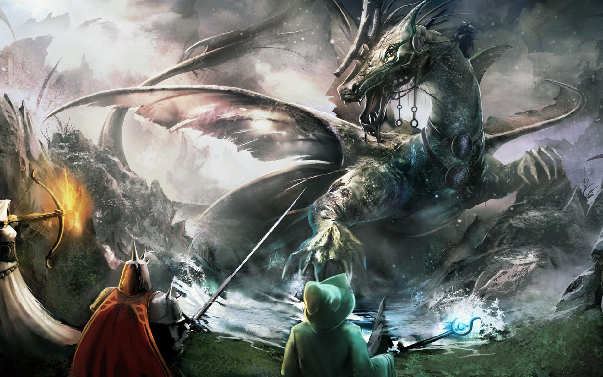 Wallpaper Trine 2 Complete Story: heroes battling with dragon