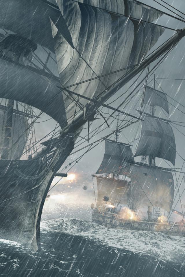 Wallpaper Assassin`s creed IV the ship battle in the ocean