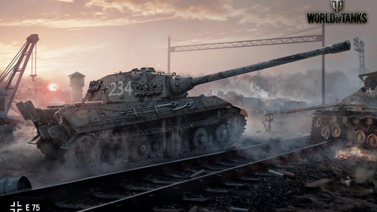 Wallpaper Tank E 75 near the railroad, the game World of Tanks