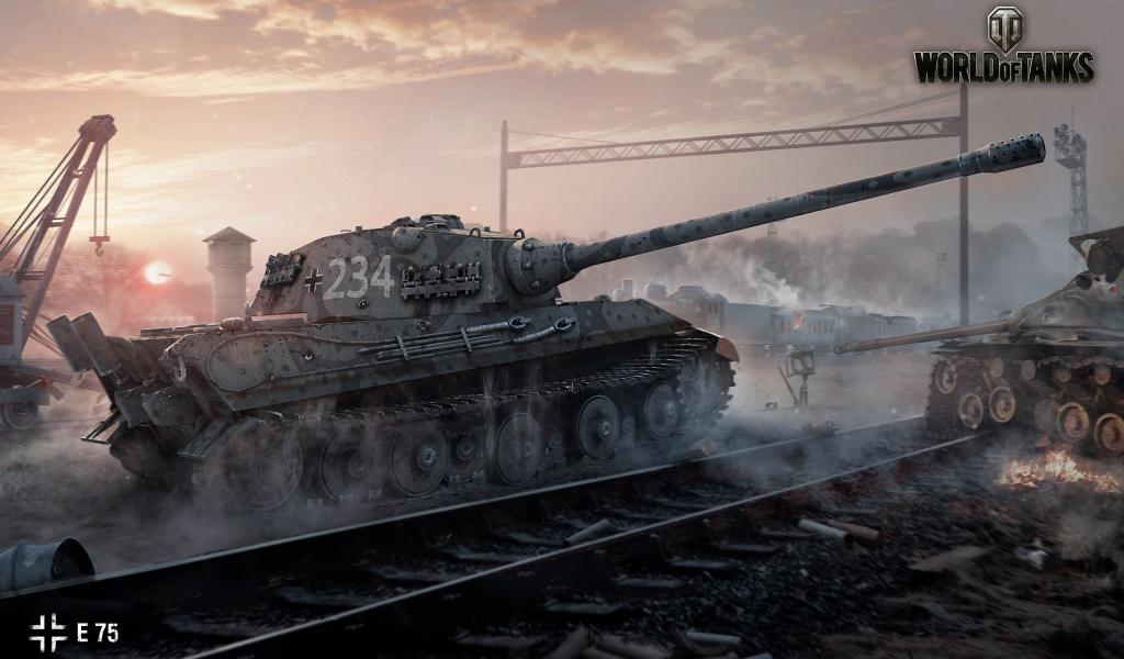 Wallpaper Tank E 75 near the railroad, the game World of Tanks