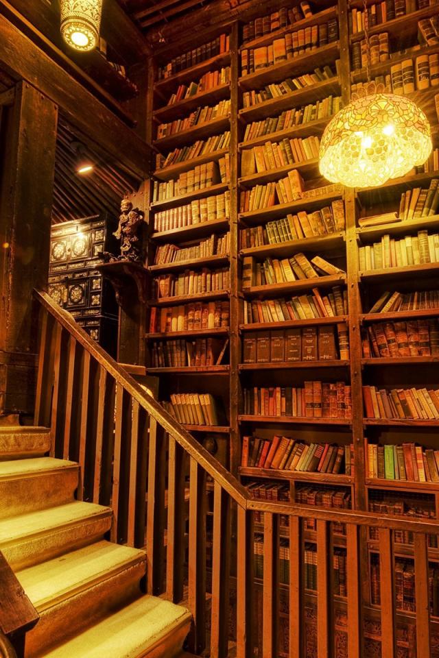 Wallpaper Interior wooden building libraries
