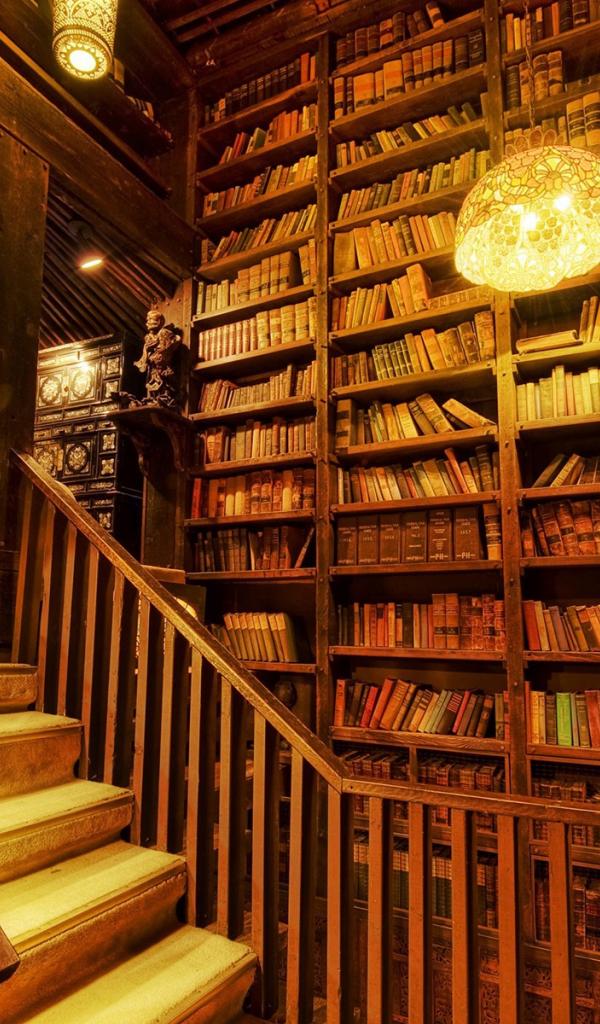 Wallpaper Interior wooden building libraries