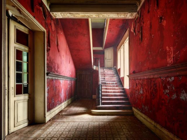 Wallpaper Red walls inside the abandoned house