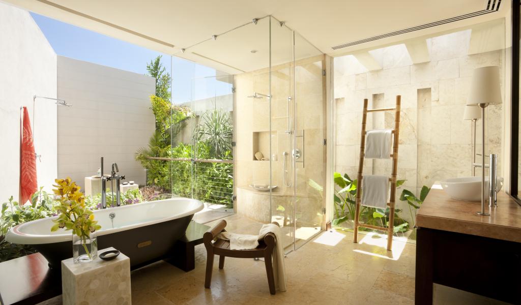 » Wallpaper Greens in the bathroom