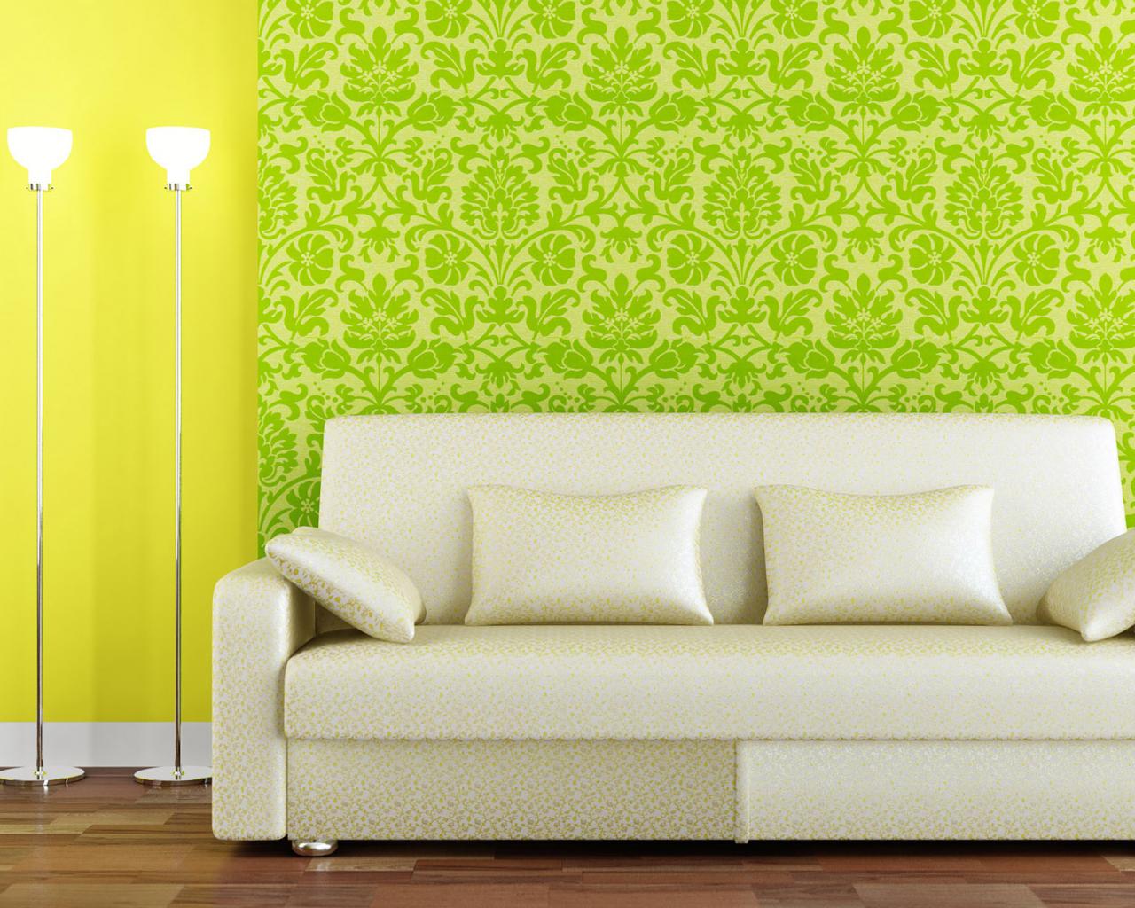 Wallpaper White sofa on green background oboj