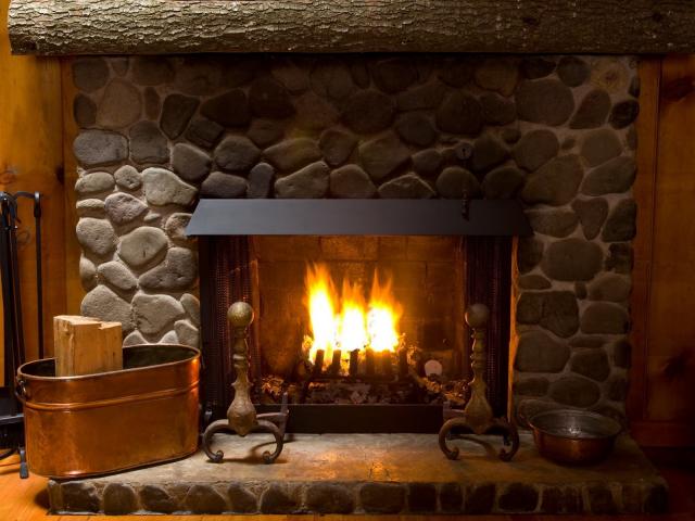 Wallpaper A bright fire in the fireplace