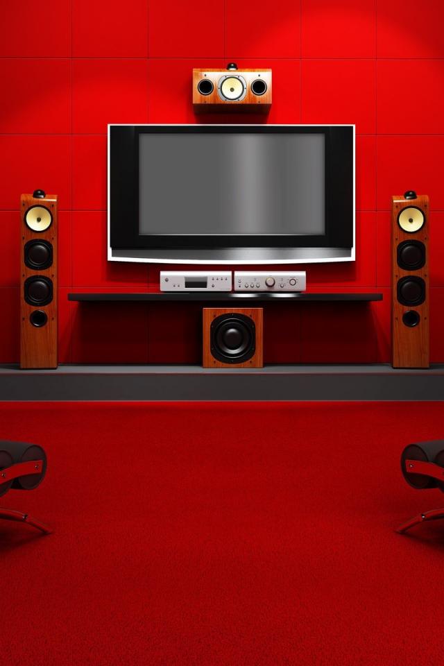 Wallpaper room, columns, television