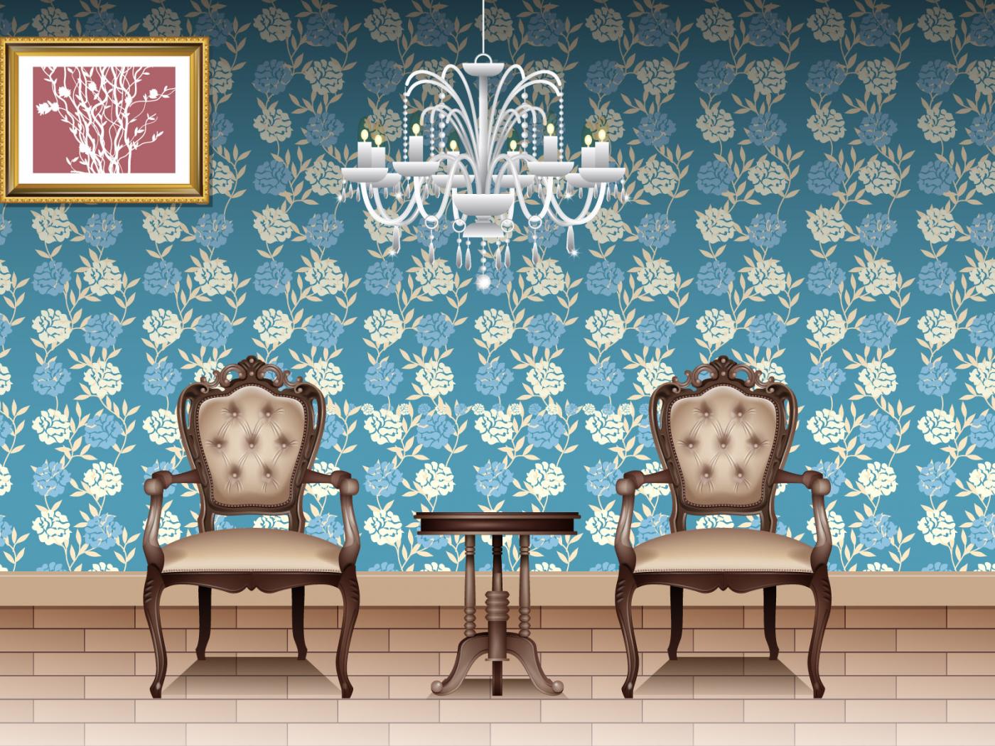 Wallpaper Blue Flower Room