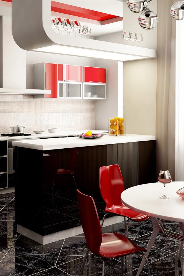 Wallpaper The kitchen and dining room / red and black