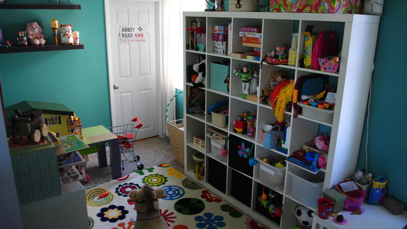 Wallpaper Careful storage of toys in the nursery