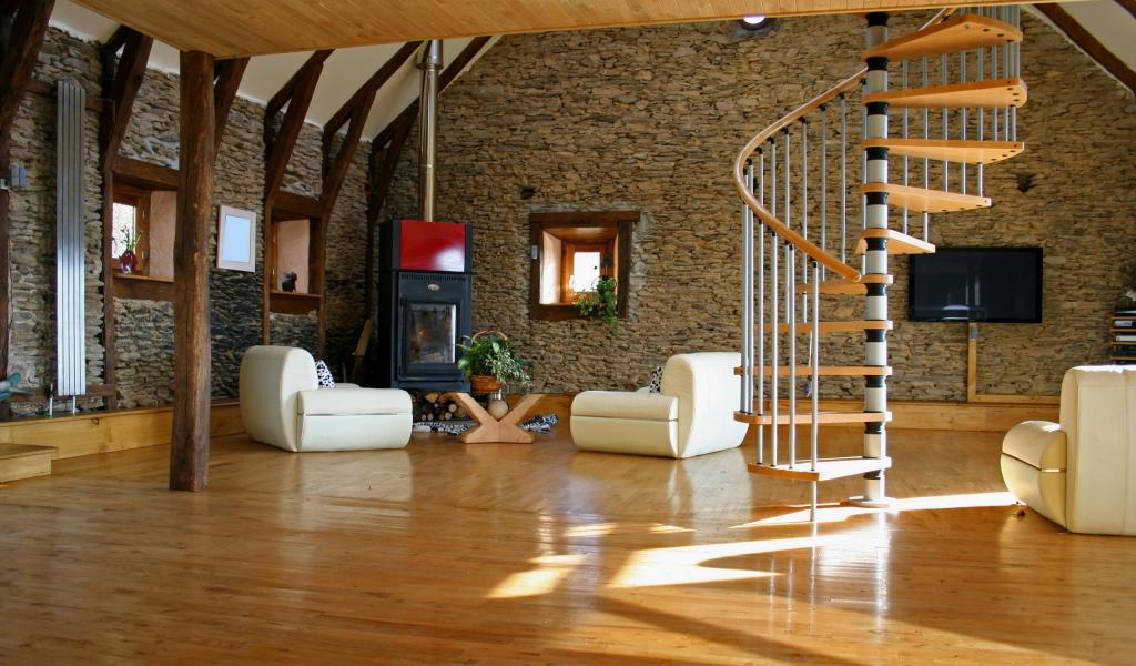 Wallpaper A spiral staircase in stone house