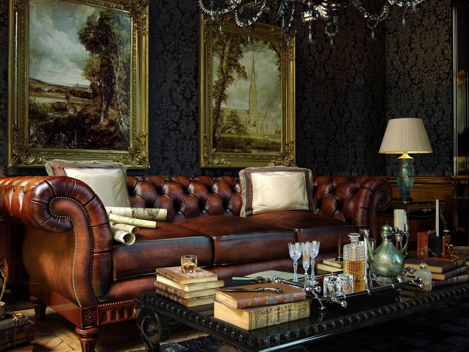 Wallpaper Luxurious leather sofa in the living room a rich