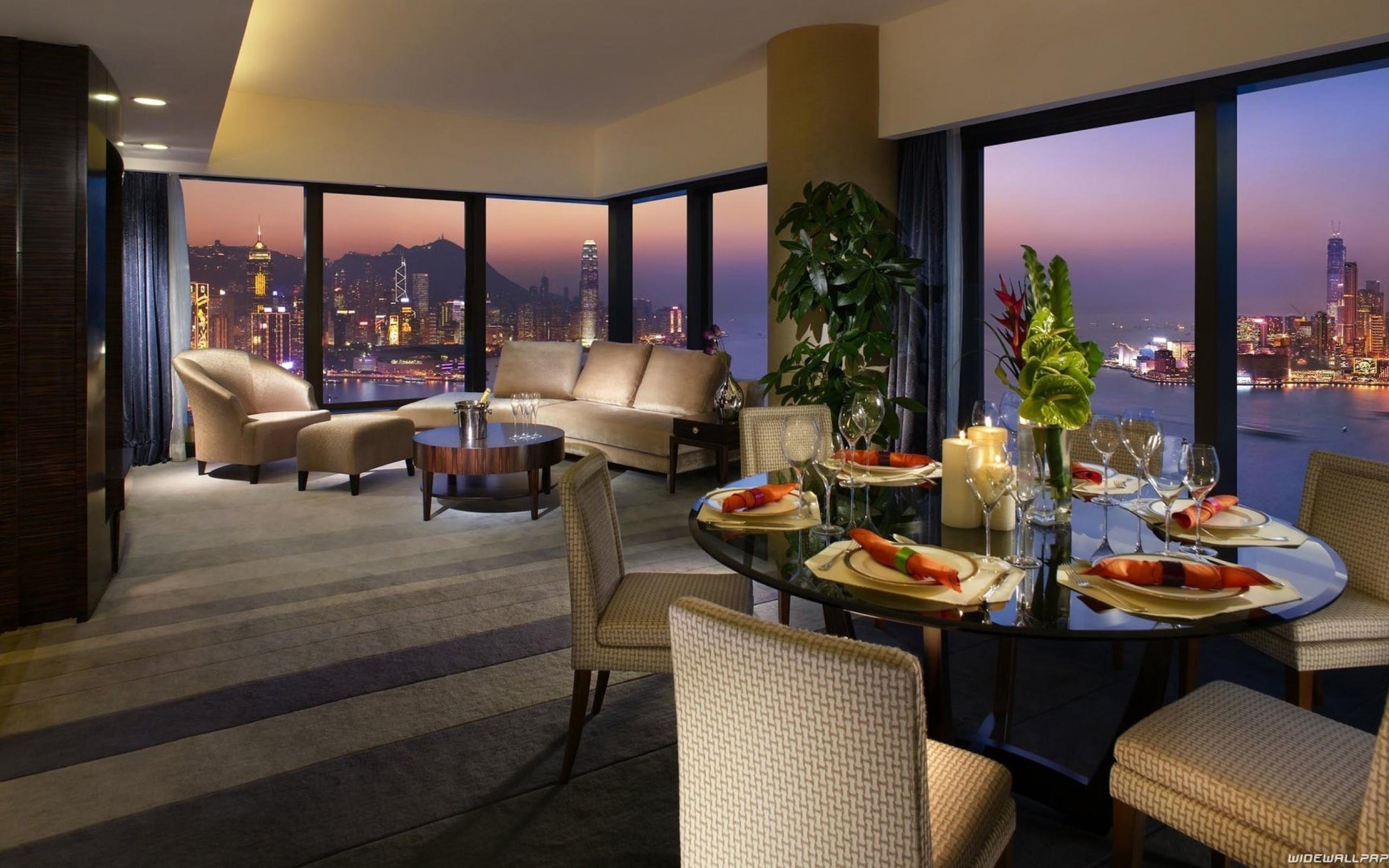 Wallpaper Living room with views of Hong Kong