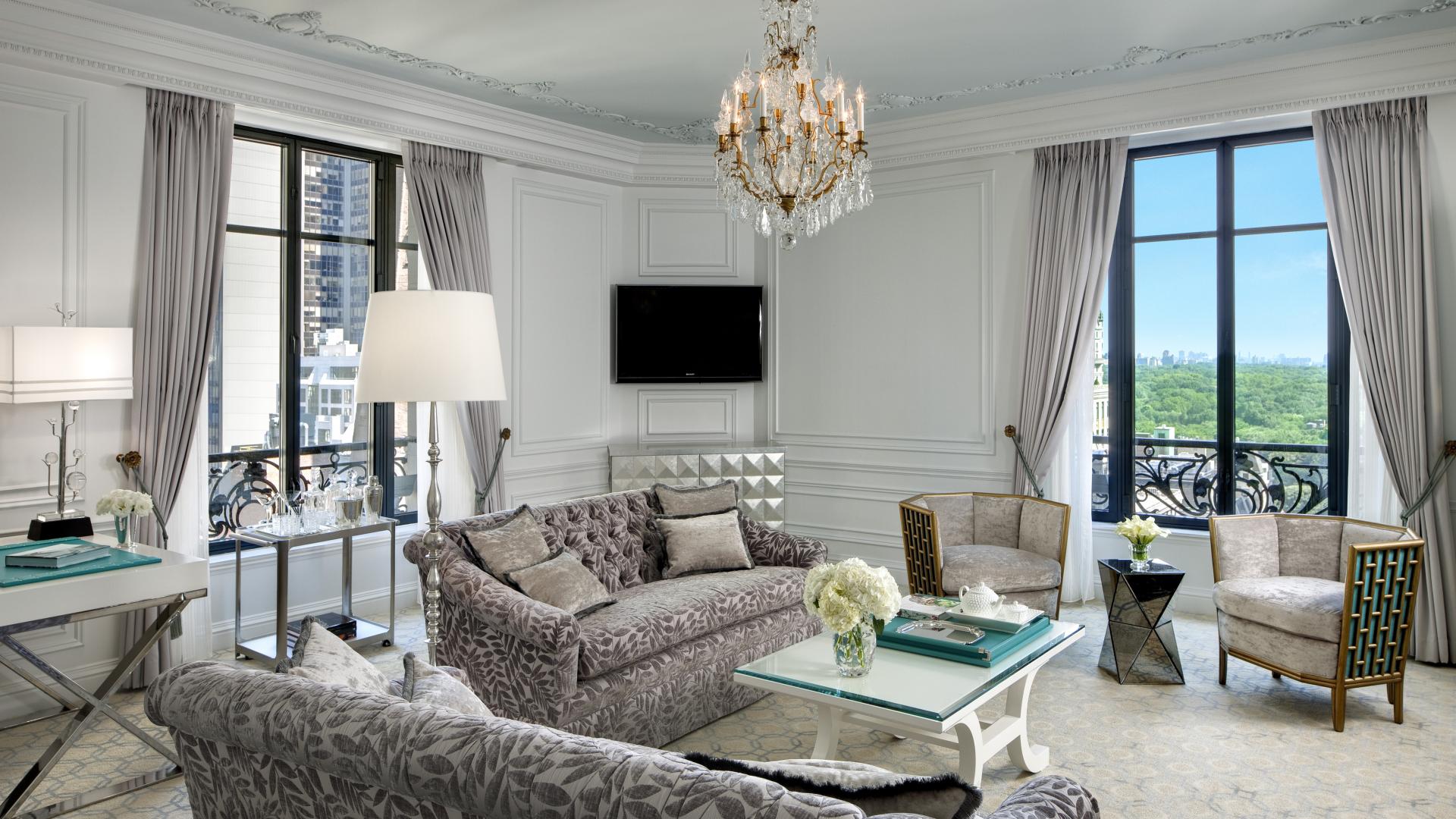 Wallpaper A large chandelier in the living room