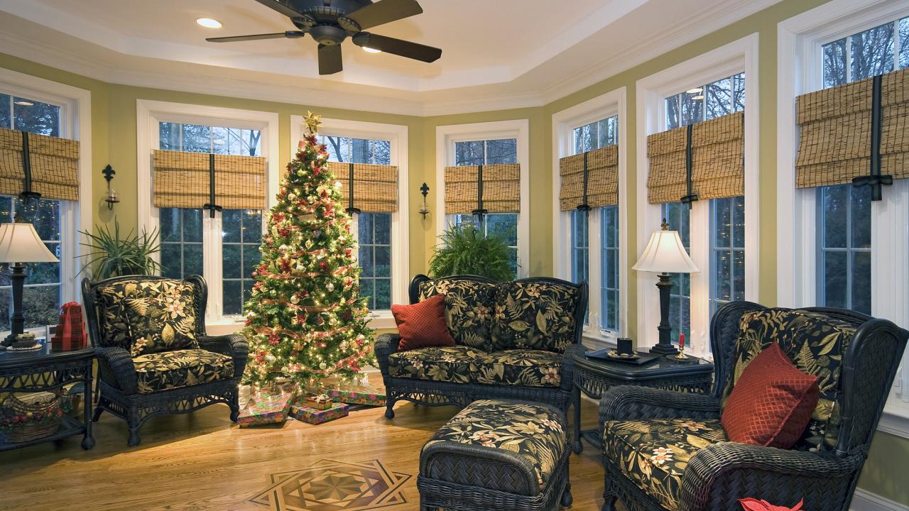 Wallpaper Decorated Christmas tree in a cozy room on Christmas