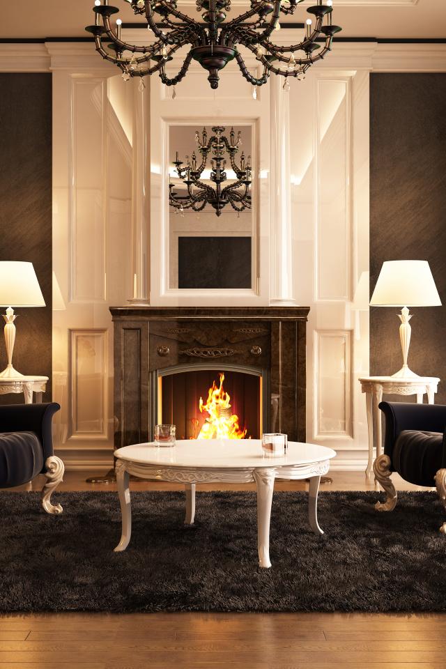 Wallpaper Interior room with fireplace