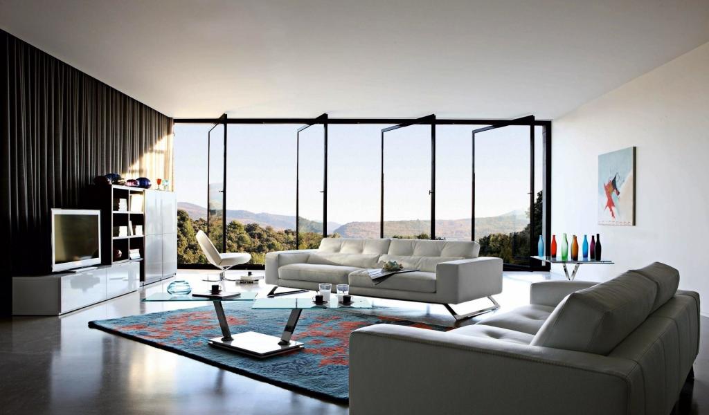 Wallpaper Living room with mountain views