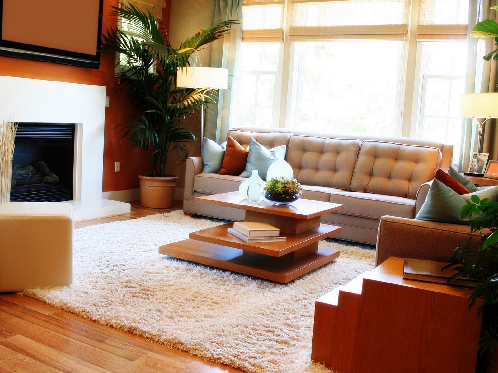 Wallpaper Living room with fireplace