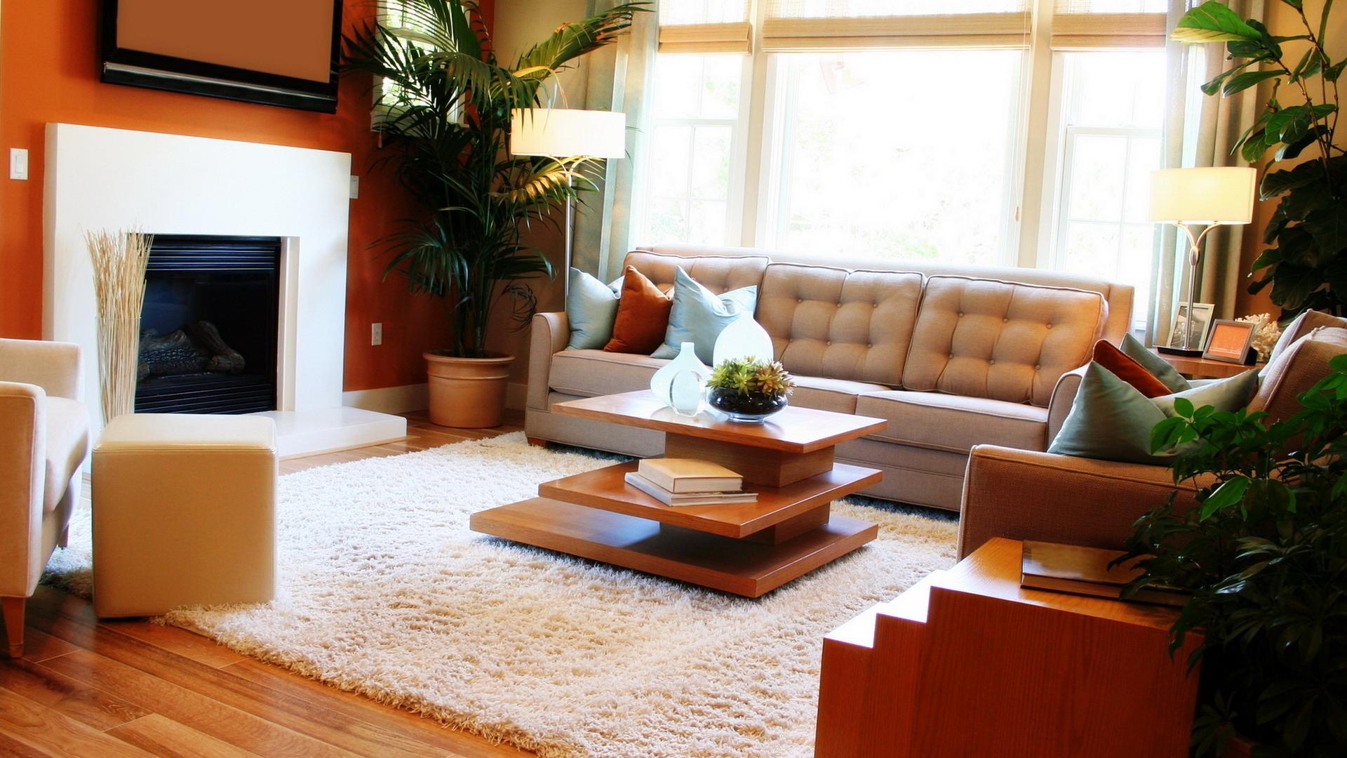Wallpaper Living room with fireplace