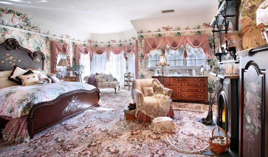 Wallpaper Bedroom with fireplace