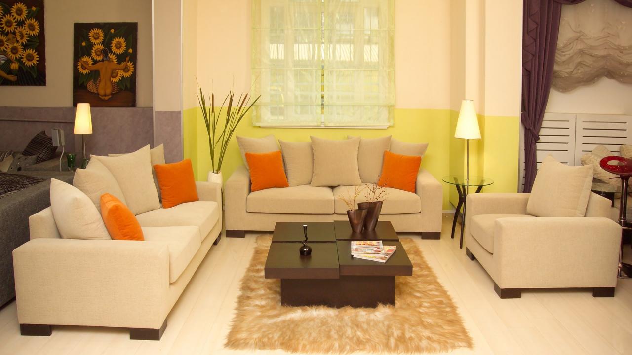 Wallpaper Orange cushions in the living room